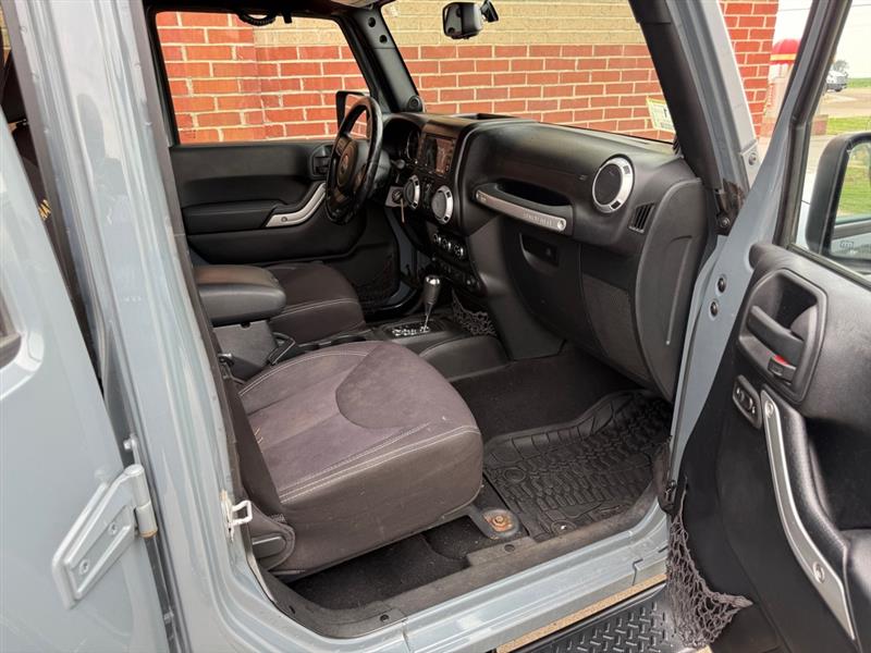 Whether you're tackling tough terrains or simply running errands around town, this Gray 2014 Jeep Wrangler has got you covered. Don't miss out on the chance to own this stylish and dependable vehicle - it's time to elevate your driving experience to the next level.